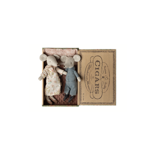 MailegA classic Maileg mouse item. Grandma and grandpa are wearing their nightwear and beautiful shoes. The cigar box is a perfect bed for a ...
